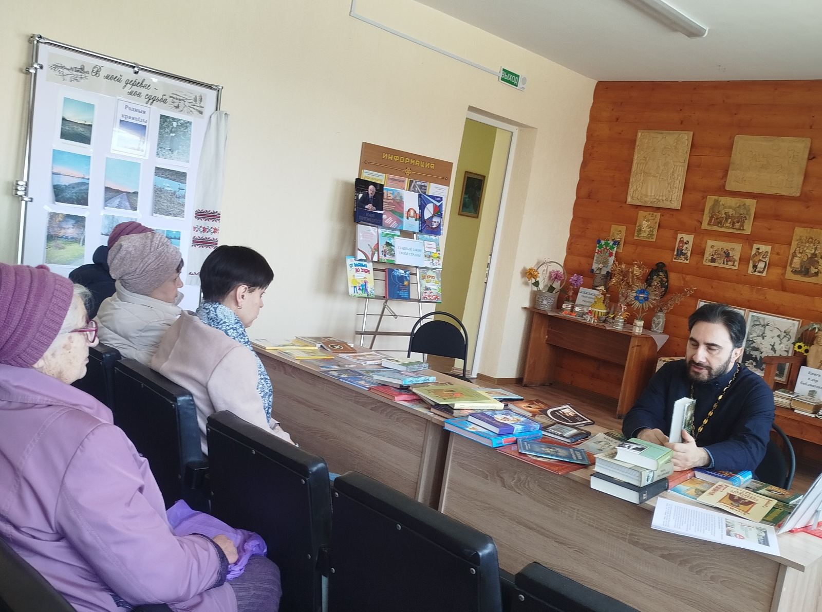 В Яблоновской библиотеке-клубе ко Дню православной книги состоялась встреча с отцом Сергием "Через православную книгу к добру и свету".